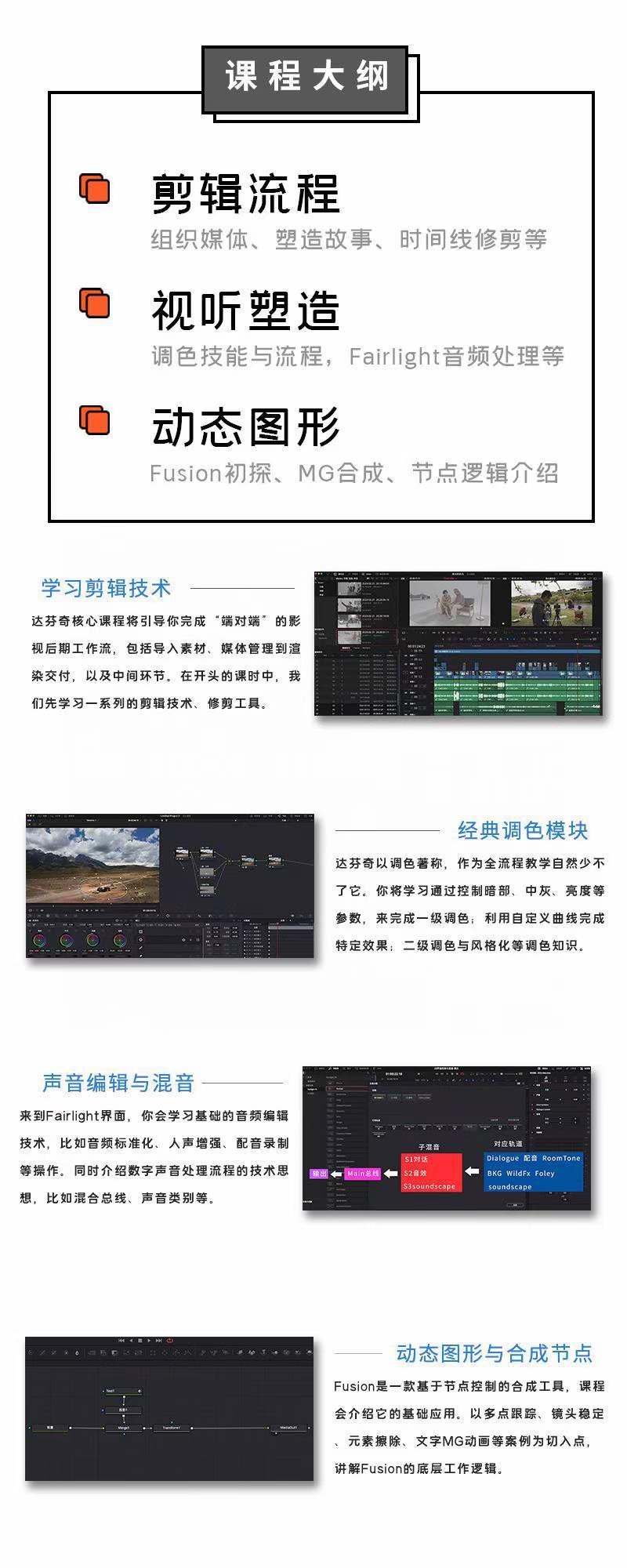 我们的课程适合影视新手小白,有其他软件使用经验的人,以及完全零基础的人。我们非常看重你们在这个学习的过程中遇到的问题,我们就会帮你分析,然后帮你去解决它,因为在这个做的过程中遇到了问题,如果你在我的帮助下解决了这个问题,那么对你的能力是一个极大的突破,只有在不断突破中才能成长,才能快速的去学会使用达芬骑,才有可能未来挑战影视制作,通常你的公司才能在影视市场里面打出一片天地。让我们一起开始这个旅程吧!