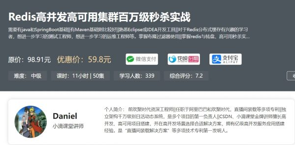 本套课程分布式缓存第二季,Redis高并发高可用集群百万级秒杀实战,课程共分为11个部分,文件大小共计2.16G。
