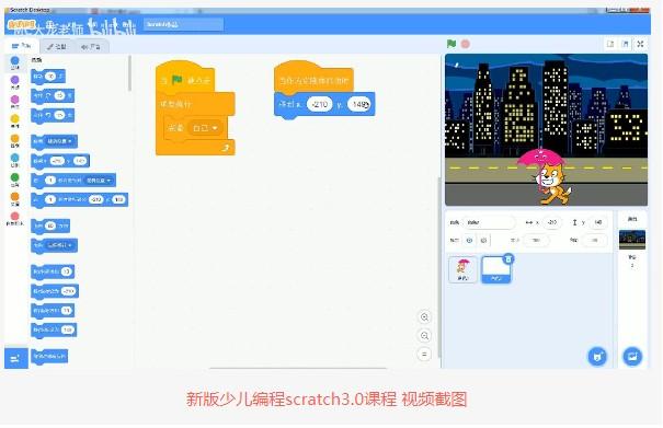 这段课程主要介绍了如何使用Scratch 3.0进行编程。以下是主要内容的概述: