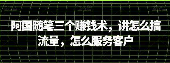 阿国随笔中提到了三个赚钱术,包括卖点锁定、流量渠道锁定和运营系统锁定。这些方法可以用来获取流量和为客户提供服务。