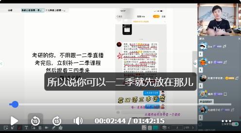 对于考研同学的建议:特别针对年底考研的同学,建议他们在第一二季可以先放置课程,等考完研后再补课并加入第三季的重播或直播。