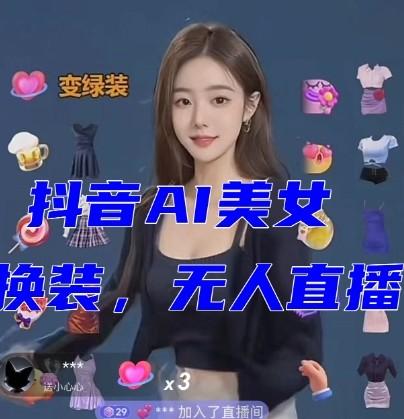 一份抖音最新最火AI美女换装跳舞无人直播互动玩法的教程,包含全套开播教程、软件、视频素材和音效。