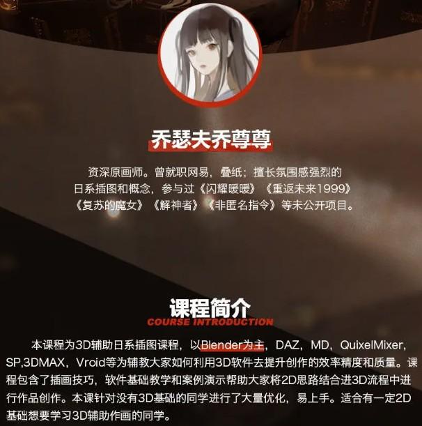 乔尊尊3D辅助日系插图班第一期2022【画质还可以有素材】课程介绍如下: