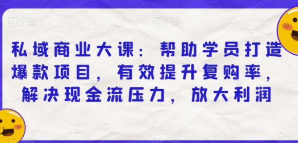 私域商业大课:帮助学员打造爆款项目,有效提升复购率,解决现金流压力,放大利润。让每个人私域看起来都欲罢不能,流连忘返,成为一个做什么都能成的私域爆款操盘手,天下没有不好做的生意,只有不会操盘的手,私域运营三板斧完美使用有效提升复购率,社群&公众号&视频号均为复购最佳工具,用好复购率会在70%以上,五维交织的私域成交方案,解决现金流压力,放大利润。
