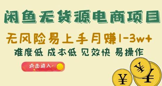 闲鱼无货源电商项目:无风险易上手月赚10000+难度低成本低见效快易操作。这个项目适合新手、宝妈、上班族,兼职党,副业党,自由职业者,名牌毕业生,只要你想做,有无经验均可,在闲鱼上卖货,货源走拼多多淘客,不需要自己囤货,我们通过多多进宝平台赚取佣金,通过闲鱼赚取差价,收入就是佣金+差价。整体来说赚差价是大头,赚佣金只是辅助。