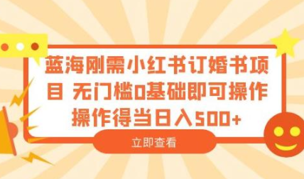 蓝海刚需小红书订婚书项目无门槛0基础即可操作操作得当日入500+【揭秘】,订婚书这个项目操作空间可以说是非常大,而且也没有什么成本对不对,主玩的平台呢就是小红书,因为这个平台的女性用户非常多,消费能力也很强,从作品制作到如何去变现我这边都说的很详细了。