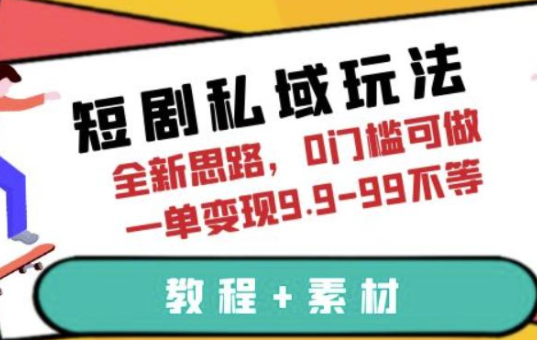 短剧私域玩法,全新思路,0门槛可做,一单变现9.9-99不等(教程+素材)【揭秘】,今天给大家带来的项目是《外面收费1680的短剧私域玩法,全新思路,0门槛可做,一单变现9.9-99不等》,项目的操作跟短剧推广一模一样,只不过是改变了变现方式,这个项目是把粉丝引流到微信,然后出售短剧资源,0门槛就能做,无需实名,无需挂载小程序,0粉丝就可以做。相对于短剧推广来说,粉丝看剧的成本就非常的低了,自然转化率就高很多,并且是虚拟资源变现,0成本,无论卖多少都是纯利润。项目刚出来,做的人还很少,要抓住这个红利期,赶紧冲!
