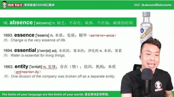本套课程英语学习必备5500词,又常被叫做杨亮考研词汇5500词,甄选四六级考研核心词汇备考一步到位;本套课程为网友所求资源,课程官方售价1599元,由杨亮老师主讲,文件大小共计45.74G。