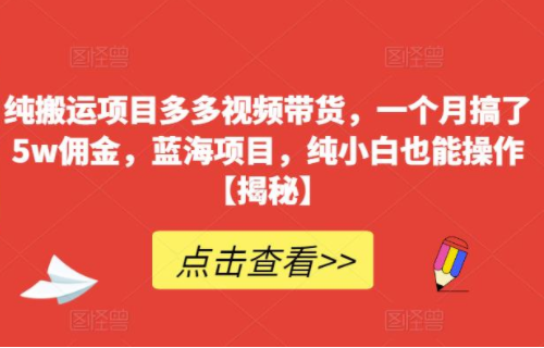 纯搬运项目多多视频带货,搬运,操作简单、用手机就能做、不用学技术、不用拍视频、不用剪辑视频、不要学费、没有成本、不需要有粉丝、赚得多还的项目。坚持3个月,单号单月1-2k,一天2-3小时可批量操作3-6个号。