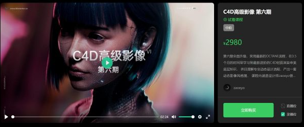 本套课程:C4D高级影像第四期(MOMENTOR),课程官方售价2980元,由Zaoeyo曾老师老师主讲,课程共分为9个大的章节,包含素材共计47.4G。