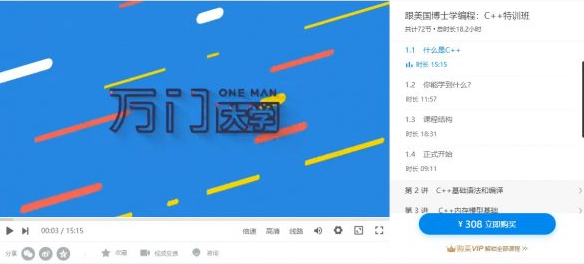 课程官方售价308元, 学习本套课程可以助你快速了解C++编程语言开发与Linux开发环境等。