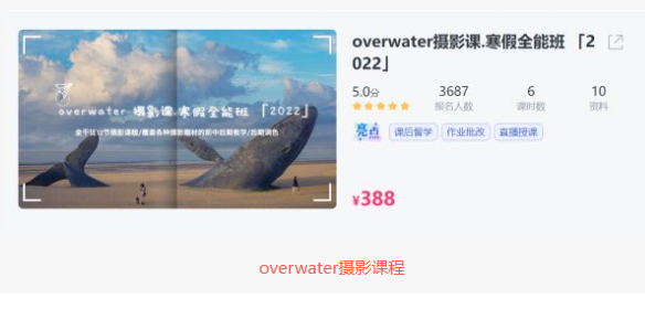本套课程overwater摄影第二期,官方售价388元,课程共分为10讲, 本套课程由微博摄影达人overwater开设并主讲,课程主要通过你是人间四月天情景人像、一招致胜的蓝调照片、蓝调进阶大海星空水族馆、小物拍摄胶片色模拟、月色与雪色之间雪景拍摄等实际拍摄案例分析,教大家摄影技巧,文件大小共计6.48G。课程讲解理论与实操相结合,通俗易懂好上手。