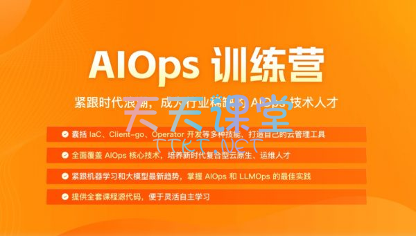 这是 AIOps 训练营・人工智能运维课程的内容汇总,涵盖开营直播、云原生基础、容器和 K8s 入门、AIOps 入门等多个板块,有视频教程与相关资料。课程通过实战案例,讲解从基础概念到复杂应用,如流量预测、故障自动修复等,助力学员掌握 AIOps 技能。