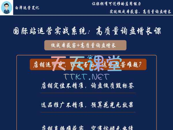 欢迎加入白泽国际站运营实战系统课,专为跨境电商从业者设计,旨在帮助您构建全面的运营思维框架,掌握高效的学习方法,持续迭代您的运营实战技能。本课程将带领您从零开始,逐步深入理解平台规则,掌握搜索排名机制,优化店铺规划与产品布局,精选关键词,打造高质量产品页面,提升店铺与单品权重,避免违规风险。