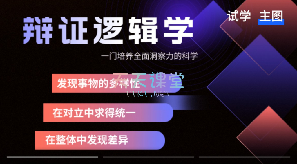 《辩证逻辑学:洞察事物多样性的科学之旅》是一门深入探讨事物内在多样性和复杂性的课程。通过39节高清视频,本课程系统介绍了辩证逻辑的核心概念、原理和应用方法,帮助学员提升全面洞察力,深入理解事物的本质和发展规律。课程内容包括辩证逻辑与形式逻辑的区别、概念论、判断论、推理论以及方法论等多个方面,同时深入剖析了辩证逻辑的基本规律,如对立统一律、质量互变律和否定之否定律等。通过学习本课程,学员将能够运用辩证逻辑的原理和方法,更好地分析和解决问题,提高认识世界的能力。本课程适合对逻辑学、哲学、社会科学等领域感兴趣的学员。