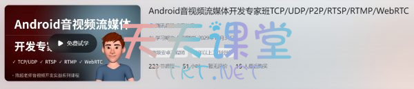 本套课程是由陈超出品的Android音视频流媒体开发专家班-TCP/UDP/P2P/RTSR/RTMP/WebRTC-官网售价4980元