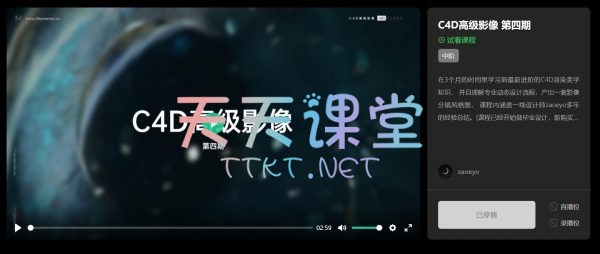 C4D高级影像课程,官方售价2980元,由曾神zaoeyo老师主讲。课程涵盖硬材质、透材质、灯光、光影、构图、大场景等九大板块,结合实操,助你快速进阶。持续更新中,已包含第二至六期内容,资源丰富,总计49.08G。适合熟练使用C4D和OCTANE渲染器的学员。点击下载,开启你的C4D高级影像学习之旅!