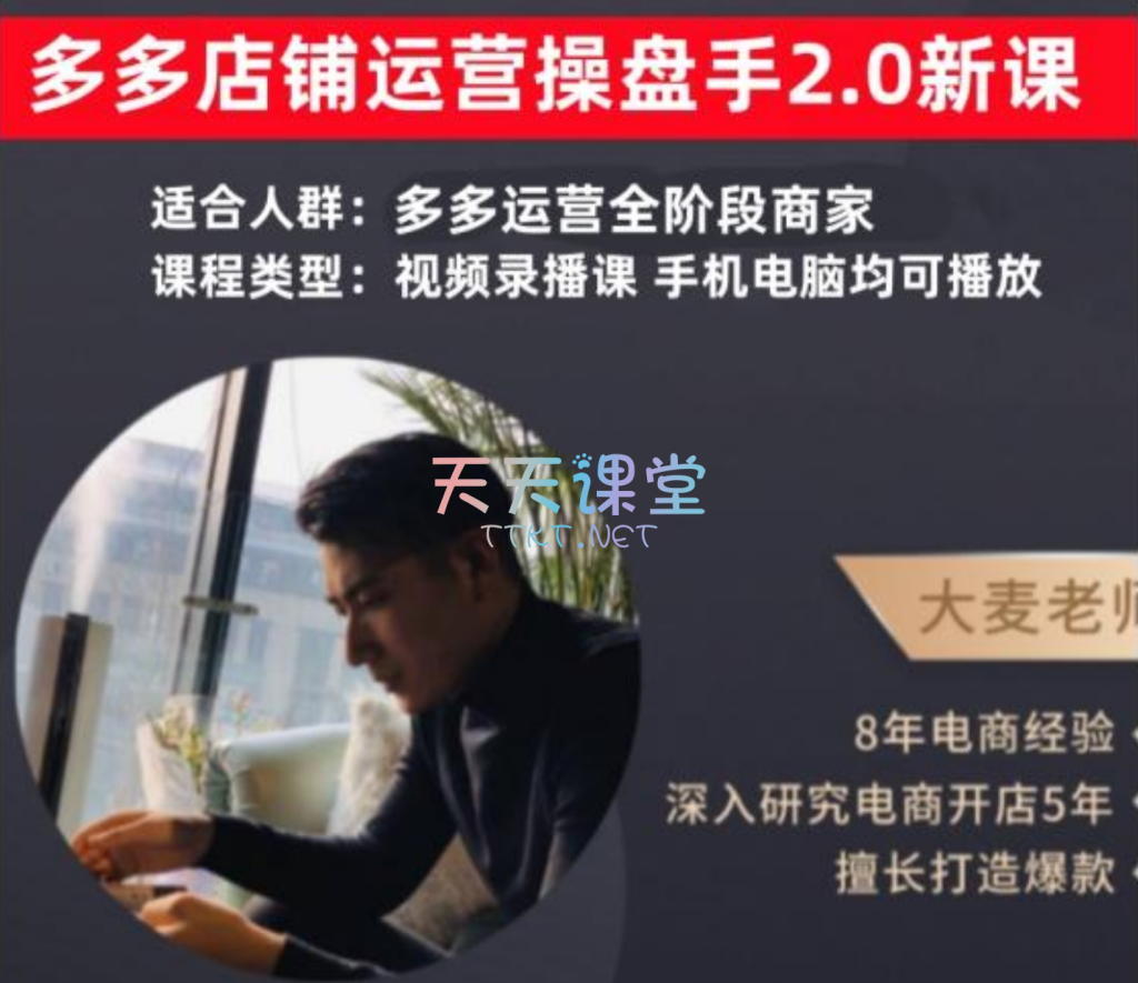 “大麦·多多店铺运营操盘手2.0新课-2024版”是专为拼多多商家设计的全方位运营实战教程,旨在帮助不同阶段的商家掌握高效运营策略,提升店铺业绩。本课程共分为八大模块,全面覆盖从入门到进阶的关键知识点