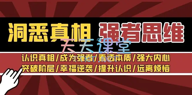 在这个充满挑战与机遇的时代,每个人都渴望成为生活的强者,掌握成功的秘诀。我们为您精心打造了《洞悉真相·强者思维》系列课程,旨在帮助您开启智慧之门,洞悉人生与社会的本质,培养强大的内心与领袖气质。