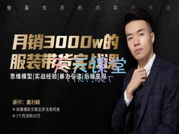 这是一门专为服装电商直播带货量身定制的实战课程,由业界顶尖导师高利峰亲授,深入剖析从0到3000万的飞跃路径。课程围绕“思维模型、实战经验、暴力引流与后端变现”四大核心模块展开,直击行业痛点,助力学员快速掌握服装直播带货的成功秘诀。