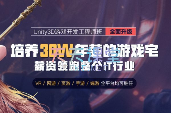 火星网校的Unity 3D游戏开发工程师网络班专为有志于成为顶尖游戏开发者的人士设计。本课程旨在培养具备高水平技能的游戏开发工程师,目标年薪可达30万元。课程内容全面覆盖手游、端游、网游及页游的开发技术,包括Unity 3D引擎的深入应用。通过丰富的视频教程和实用工具,学员将从零开始学习到高级游戏开发技巧。课程资料丰富,总容量达56.48GB,能够满足不同层次学习者的需求。无论您是初学者还是希望提升技能的专业人士,这套课程都能帮助您掌握当前游戏行业中最为流行和强大的Unity 3D游戏引擎,并最终实现您的游戏开发梦想。