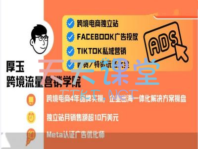 《厚玉跨境·跨境电商独立站+广告营销+私域营销》课程,由跨境流量营销学院打造,全面覆盖跨境电商独立站运营与流量变现的核心技能。课程从独立站基础认知、建站选择、物流方式入手,深入讲解选品策略、普货与黑五类货盘运营、建站实操及转化率优化。