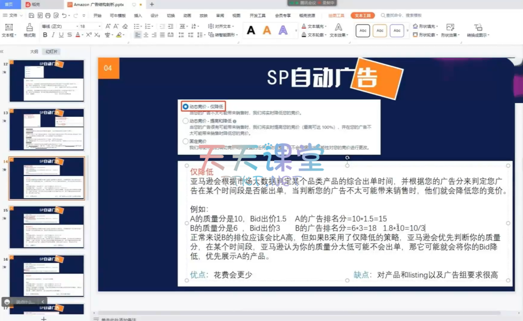 广告策略的深度解析,特别强调了新品推广、老品优化、自动与手动广告的应用、关键词管理、广告位调整以及数据分析等实战技巧的学习。