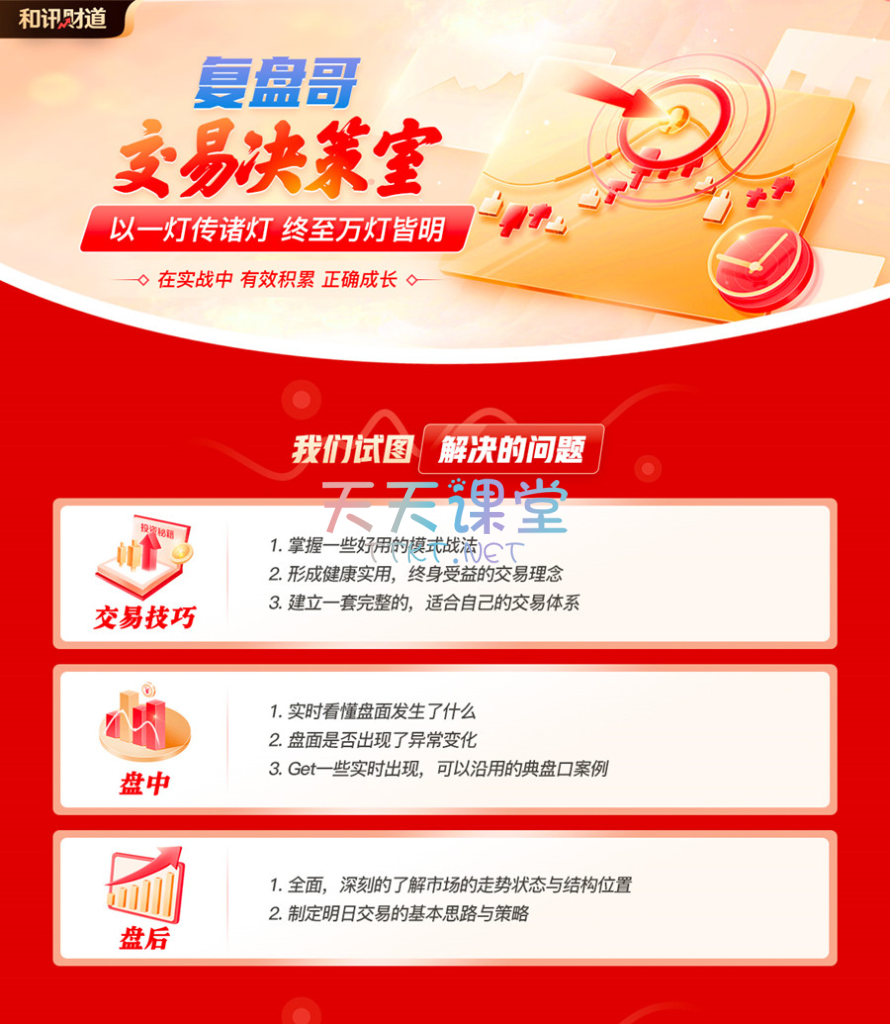 - 交易决策室直播:持续更新的直播课程,涵盖市场热点解读、策略调整、问题解答等,确保学员紧跟市场脉搏。