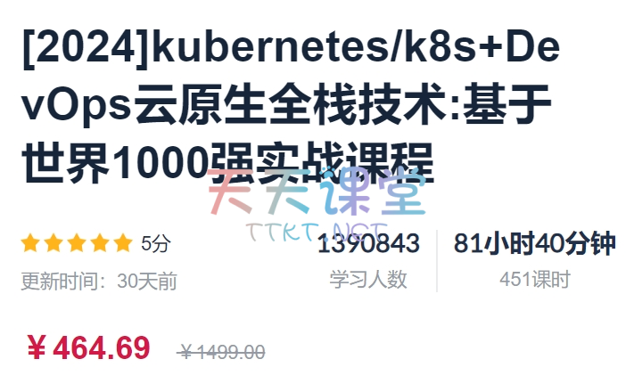 本套课程kubernetes/k8s+DevOps云原生全栈技术:基于世界1000强实战课,课程官方售价464.69元,内容共37章,共计5.74G。