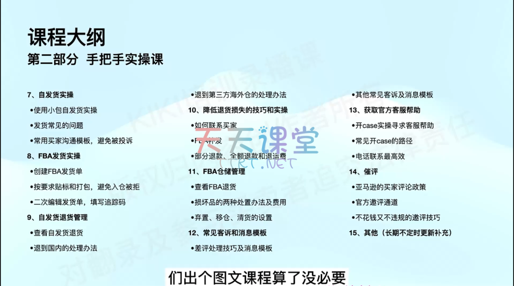 亚马逊从零到精通。涵盖运营流程、广告投放、物流管理、品牌建设、后台操作等核心技能,实战演练。