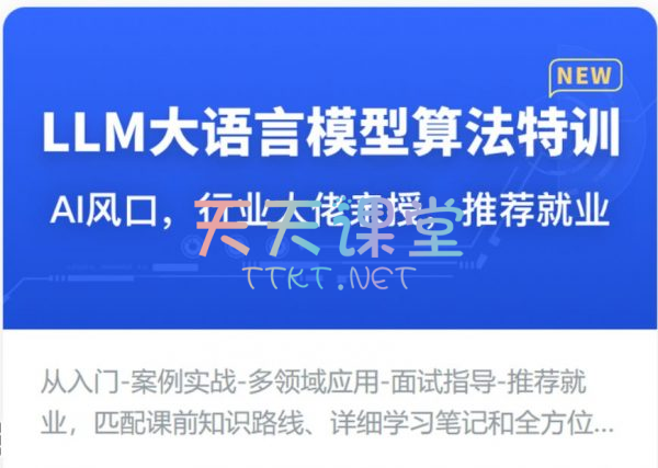 随着人工智能技术的飞速发展,大语言模型算法工程师成为了行业内的热门职位。为了帮助您快速转型,我们特推出“LLM大语言模型算法特训”课程。本课程由资深专家主讲,售价2999元,内容涵盖视频教程及相关资料,总容量16.17G。