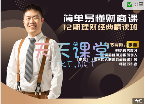 在为期一年的课程中,每次精读班将持续一周,包含6期音频讲解和周末答疑环节,确保学员能够深入理解并应用所学知识。此外,李源导师还将分享自己的直播干货和思考,包括与“钱”有关的好书、人物故事、理论等,让学员在轻松愉快的氛围中提升财商素养。