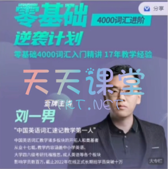 本套课程刘一男:零基础4000词英语逆袭计划,课程官方售价599元,内容共88节完整版高清视频,详见下方目录,文件大小共7.57G。