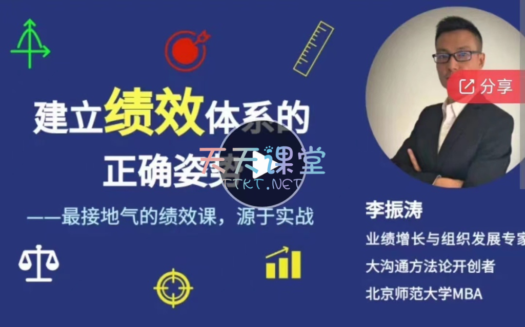 《李振涛·建立绩效体系的正确姿势》是一门基于实战经验的绩效管理课程,涵盖绩效管理的基础理论、平衡积分卡的应用、指标提炼与落实、绩效纠偏、考核评估与结果处理等多个模块。课程深入浅出地讲解了绩效管理的正确方法,帮助企业和管理者构建有效的绩效体系,提升组织效能。通过实战案例分析,学员可以学习如何制定合理的绩效指标,进行有效的绩效沟通,并将绩效结果应用于薪酬调整、晋升和发展培训等方面。
