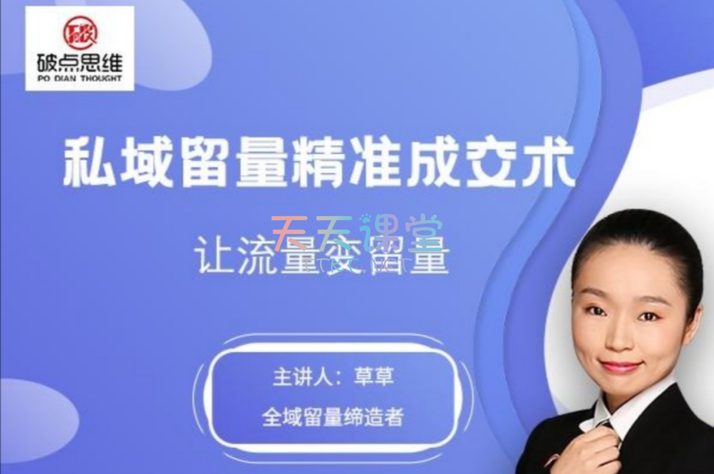 《破点思维草草·私域流量精准成交术》是一门专为寻求在私域流量领域实现高效转化的营销人士和企业打造的实战课程。本课程通过一系列精心设计的视频教程,深度剖析私域流量的构建、维护与变现策略,旨在帮助学员将流量真正转化为留量,实现商业价值最大化。