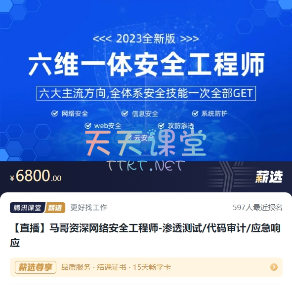 本课程由马哥亲自打造,专为网络安全领域推出“六维一体”综合安全工程师培训课程第二期,原价高达68000元。课程内容全面覆盖Web安全、网络安全、代码审计、应急响应、系统防御、渗透测试及自动化工具运用等关键技能,总量24.92GB,目录详尽在下文。