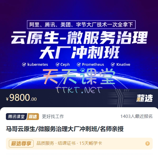《马哥云原生微服务治理大厂冲刺班》由名师N66主讲,全面解析阿里、腾讯、美团、字节等大厂的前沿技术,是冲刺技术高峰的理想选择。课程官方标价9800元,涵盖35章节的深度内容,配以详实视频和资料,总容量达152.20G,