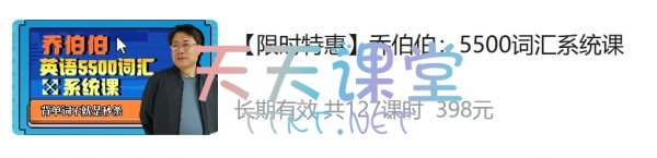 本套课程乔伯伯:5500词汇系统课,乔伯伯带你用:5大方法、30小时,玩转5500英语单词!课程官方售价398元,内容共127节完整版,包含专属单词页,共计10.12G。