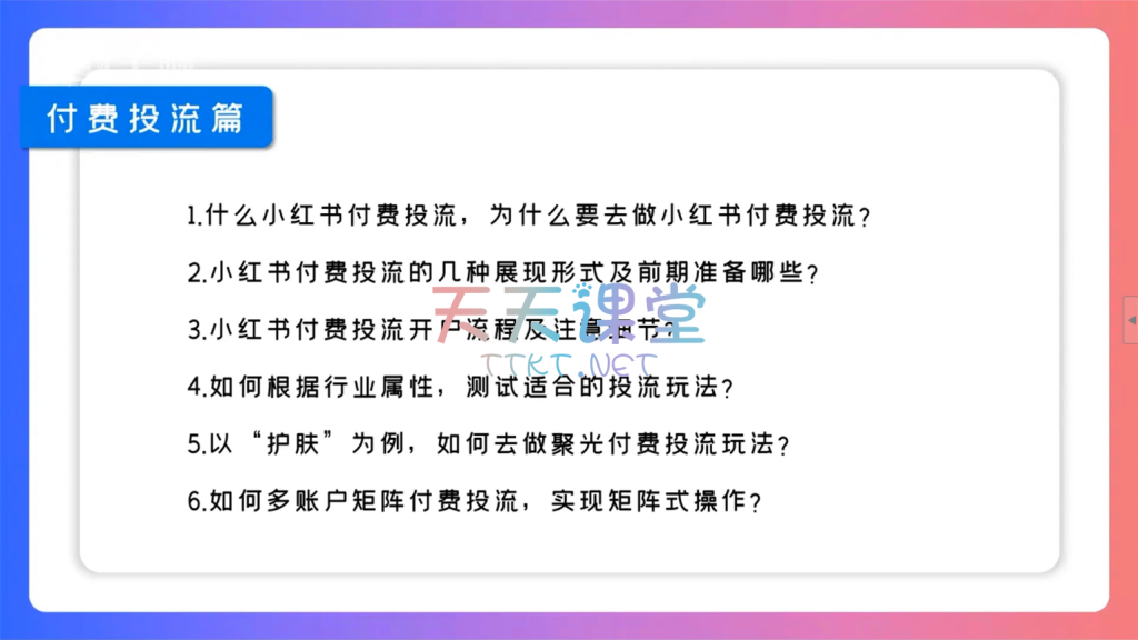 《轻创江湖·小红书引流矩阵陪跑线上第一期》课程,旨在教授您从小红书账号的初步搭建到高效运营的全流程技巧。课程覆盖养号策略、矩阵截流、直播带货、付费流量优化等关键环节,辅以实操演示,如爆款素材库构建、AI辅助内容创作、批量产图技巧、兼职团队管理以及设备安全设置等。通过系统学习,学员将掌握小红书平台的深度玩法,特别是针对“创业粉”的免费矩阵引流技术,实现精准粉丝增长与高效转化。