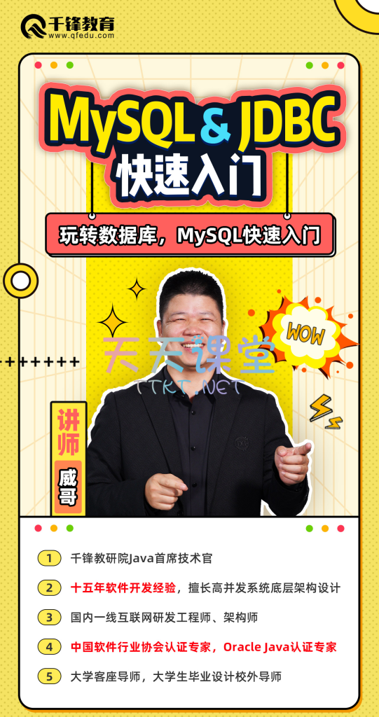 千峰教育·数据库小白速通MySQL&JDBC快速入门课程,是专为初学者量身打造的数据库入门宝典。课程从Java基础讲起,逐步深入到MySQL数据库的操作,再到JDBC连接Java与数据库,实现数据的增删改查。通过实战项目演练,让你快速掌握数据库的核心技能,为未来的开发工作打下坚实基础。课程内容丰富,包括Java基础、MySQL数据库操作、JDBC连接技术、数据库设计等多个方面,让你全方位了解数据库的应用与实战。无论你是编程新手还是有一定经验的开发者,都能从这门课程中获得巨大的收获。