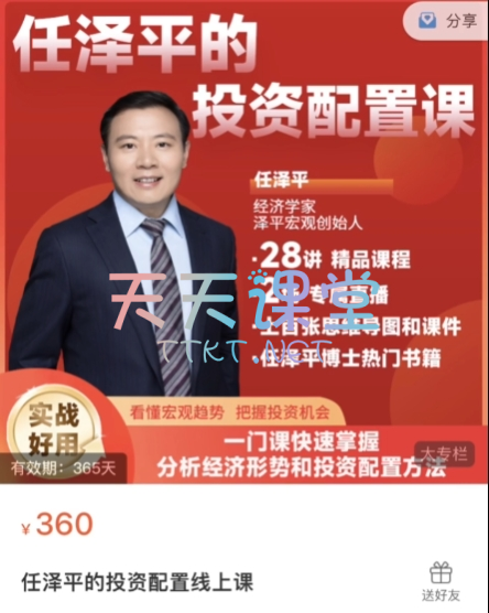 《任泽平·投资配置课2024版》由经济学家任泽平主讲,课程涵盖中国经济“三驾马车”、PMI、金融市场解析,以及如何理解经济周期等内容。此外,还包括股市、基金、保险、黄金等具体投资领域的指导手册,并深度剖析了多位投资大师如格雷厄姆、巴菲特、索罗斯等人的投资理念。同时,课程还探讨了新能源汽车与人工智能产业的投资机遇,为投资者提供全面的投资策略指导。