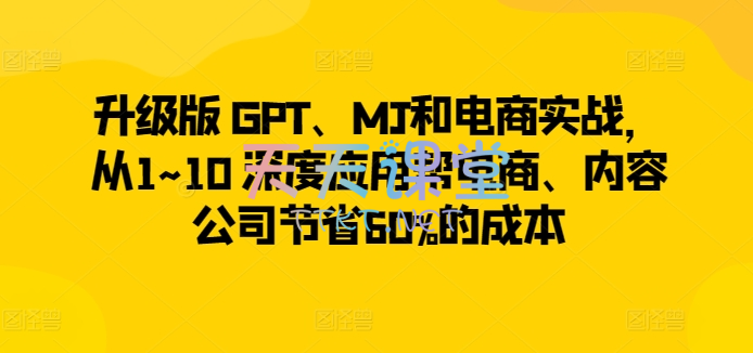 升级版GPT、MJ与电商实战课程,专为电商和内容公司量身打造,助力节省高达60%的成本!本课程涵盖从GPT爆款视频模板创作到MJ绘图高效应用,让你轻松掌握AI技术在电商领域的深度应用。学习如何优化GPT提示语,结合MJ生成高质量设计图,打造个性化电商短视频。更有定制级GPT训练、视频插件使用等实战技巧分享。