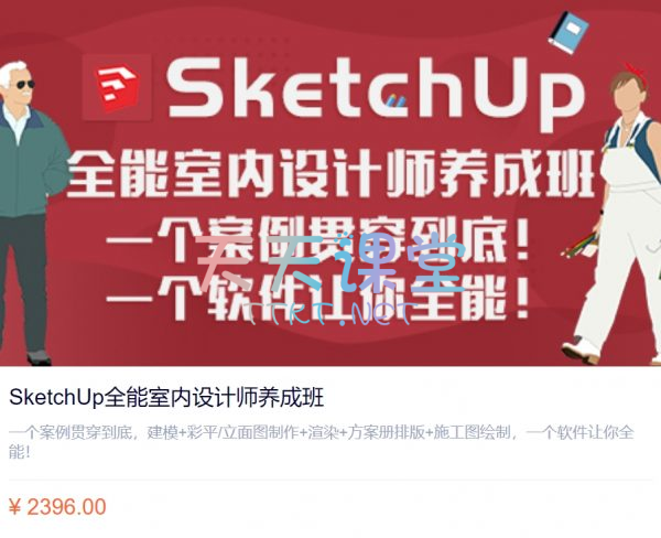 SketchUp全能室内设计师养成班,集彩平、建模、施工图与渲染四大核心技能于一体,助你快速掌握室内设计全流程。课程售价2396元,内容详实丰富,包含54.22G高清资料。从快速绘制彩色平面图到立体建模,再到施工图绘制与渲染技巧,全方位提升你的设计实力。立即下载,开启你的室内设计之旅!