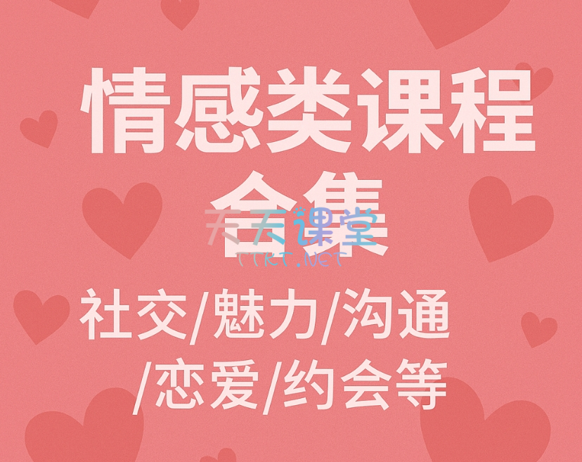 23 套情感类课程合集重磅来袭!涵盖情感关系、人际社交、个人魅力提升三大核心方向,包含恋爱技巧与约会学(含 PUA 理论、吸引力打造、伴侣关系解析)、情商与沟通能力训练,以及男女专属个人成长与魅力塑造等内容。课程体系全面,干货满满,助你解锁情感密码、提升社交能力、塑造独特魅力,总文件大小 116.94G,详见课程目录!