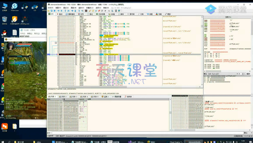 - 62×64——定位走路call,分析各项参数数据,讲解x64调用预定2.mp4