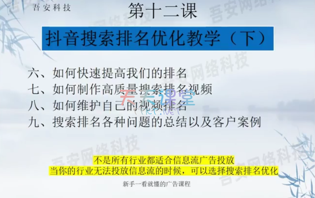 本课程由吾安科技倾力打造,专注于信息流广告的开户、投放计划制定及运营数据优化。通过系统的教学,帮助学员全面了解信息流广告的核心知识,掌握广告搭建与投放的实用技巧,实现广告效果最大化。