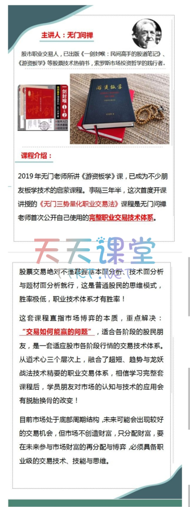 【无门问禅】2024年《无门三势量化职业交易法》课程介绍