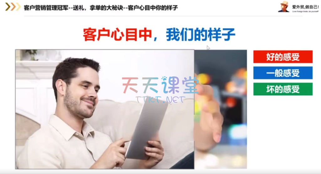 【外贸销售课】外土司·客户销售管理冠军课程,是专为外贸销售人员打造的实战指南。课程从营销思维到客户管理,全方位剖析外贸销售的核心技巧。你将学习到如何精准选择付款方式、应对收款风险,以及处理各种客户问题的策略。课程还深入探讨了客户管理的核心要点,包括客户分类、建档、系统化营销等实用技巧。更有针对不同国家、不同来源客户的分析大法,助你精准定位目标客户。此外,课程还分享了大量实战经验和话术,让你轻松搞定客户,实现源源不断下单。最后,课程附赠客户跟进管理表和每日工作表模板,助你高效管理客户信息,提升销售业绩。