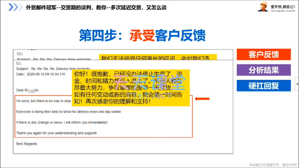 - 交货期与催款管理:学习如何准确报出交货期,应对交货延迟,并掌握催款、索赔、退货等关键环节的处理技巧。