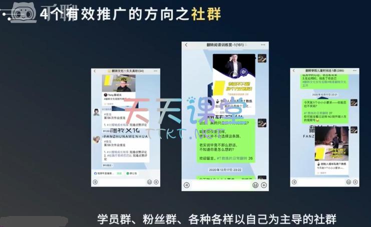第三,作者强调了一对一推广的重要性。他建议到微信好友中筛选精准人群进行推荐,并针对不同主题的课程推荐给相应的人群。